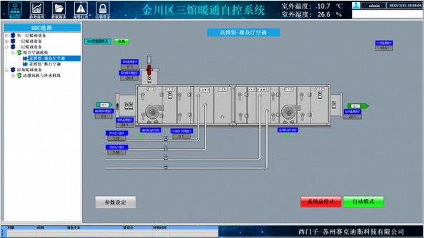 金昌三館暖通空調(diào)項目自控系統(tǒng)是將金川區(qū)圖書館、花博館、檔案館三處館所內(nèi)所包含的風冷熱泵系統(tǒng)、組合式空調(diào)系統(tǒng)、新風系統(tǒng)、送排風系統(tǒng)和排污系統(tǒng)等納入樓宇自動化管理系統(tǒng)進行統(tǒng)一監(jiān)視、控制和管理。直觀簡潔的操作畫面,經(jīng)濟的控制器選型和系統(tǒng)搭配,健全的報警機制,利用 PID 功能精準控制調(diào)節(jié)閥,充分體現(xiàn)了系統(tǒng)的簡單易操作、經(jīng)濟高效、安全、節(jié)能等特點,為場館提供了一個安全、舒適的生活、學(xué)習與工作環(huán)境空間。